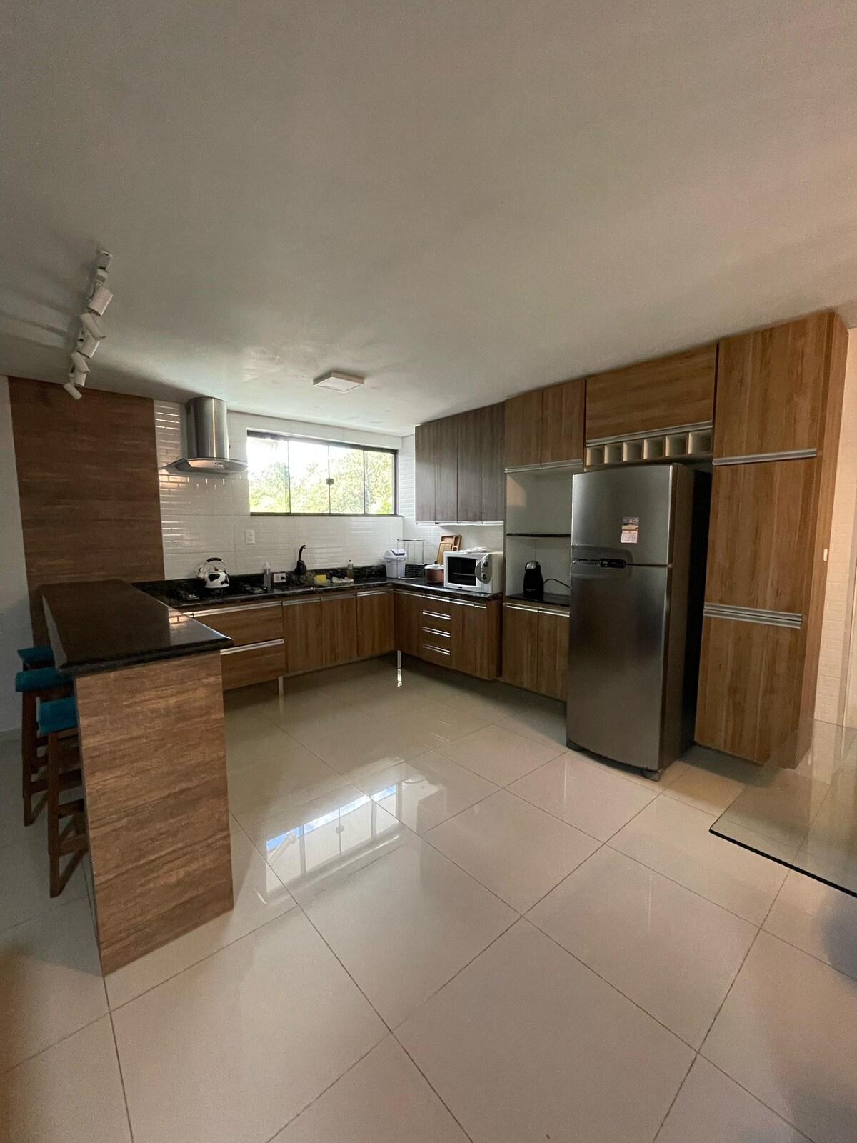 Apto con 4 dormitorios 1 suite con aire acondicionado y 1 cama doble y 2 camas individuales Cama matrimonial de 2 dormitorios 1 con 1 cama individual y 1 doble 1 baño y 1 baño con secador de pelo Cocina completa. Parrilla Ropa de cama y toallas Estacionamiento privado compartido, espacio para más de 3 coches y puerta electrónica. Wi-Fi Para utilizar la piscina/área de fiestas, primero debes consultar la disponibilidad y reservar. Patio exterior en renovación.