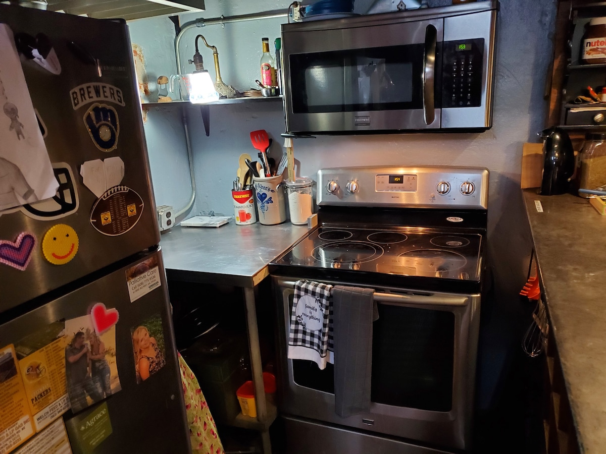 Berry Hill Flat sits perched on a bluff above Trout River Valley. Trout live in beautiful places and so do we! The Flat offers a king bed in the bedroom, full bathroom, full kitchen, living room, twin bed, and private ground floor entrance. It is the lower level of our beautiful log home nestled in the walnut trees. Minutes to Decorah, Waukon, or the trout stream in the Valley below.