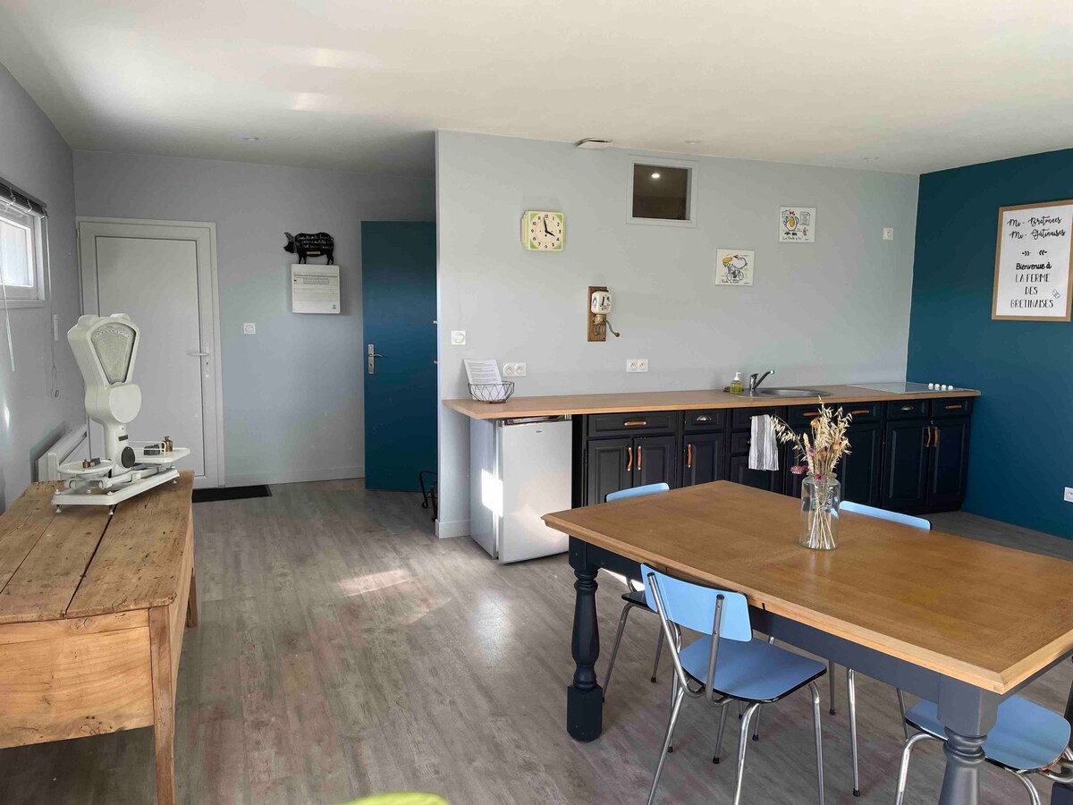 Découvrez le paysage qui entoure ce logement de 55m2. Une pièce unique munie de 2 lits 2 places, une cuisine, et une salle de bain. Le logement est confortable, simple et rénové avec soin. Je fais en sorte qu’on s’y sente bien mais amis de l’exigence et du luxe passez votre chemin. Un cadre bucolique où la tranquillité est le maitre mot. Je suis située à 1h du puy du fou, 1h du futuroscope et 1h des marais au milieu des 3 sites emblématiques qui entoure mon exploitation.