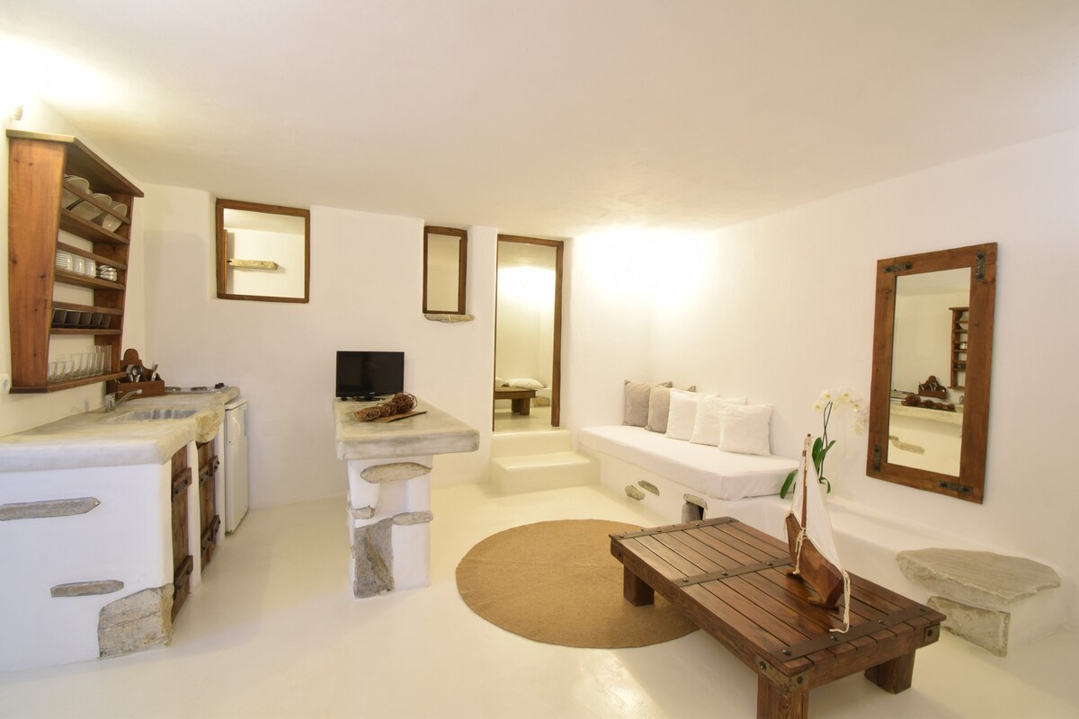 Disfruta de la sencillez de este alojamiento tranquilo y céntrico. Airbnb: Cómodo apartamento en una ubicación ideal, a solo unos minutos a pie del puerto y las hermosas playas. Muy cerca del mercado central de la isla y de la plaza, con fácil acceso a tiendas, restaurantes y cafés. Opción ideal para aquellos que quieren disfrutar de su estancia en la hermosa isla de Antiparos.