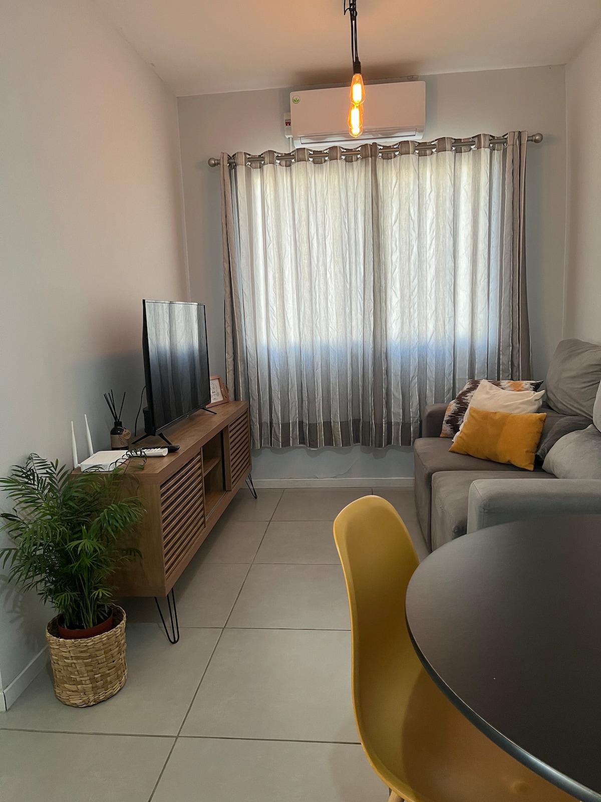 Apartamento de excelente estándar, de nueva construcción, con suelo flotante, porcelanato, TV por cable (Net), internet y decoración moderna. Ubicación privilegiada a 100 metros de la estatua de Iemanjá y de la playa. Cuenta con una plaza de aparcamiento y zona gourmet con barbacoa (del Condominio). Patio de estacionamiento amurallado, con cerca eléctrica y acceso por portón automatizado. Tiene capacidad para 3 personas. Cuenta con dos ventiladores y todos los utensilios de cocina.