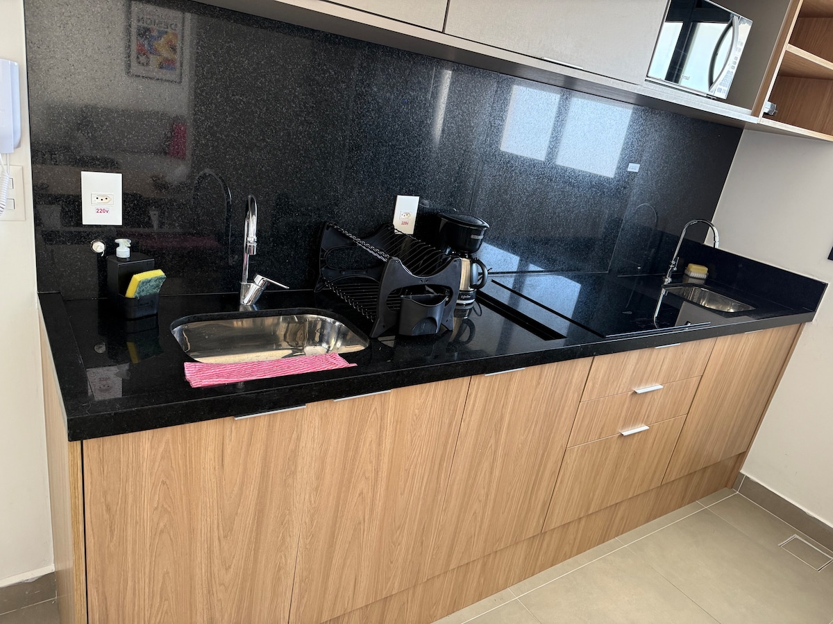 Apartamento mobiliado, apenas 230 metros da praia, menos de 3 minutos a pé. Roupa de cama, toalhas, ar condicionado, TV a cabo, wi-fi, cofre digital, secador de cabelo. Acomoda confortavelmente 4 pessoas, com uma cama de casal no quarto e um sofá cama na sala. Para maior conforto, o Flat conta com recepção 24 horas facilitando o check-in ou check-out, excelente café da manhã (pago a parte), piscina, academia e limpeza diária, exceto domingos e feriados.
