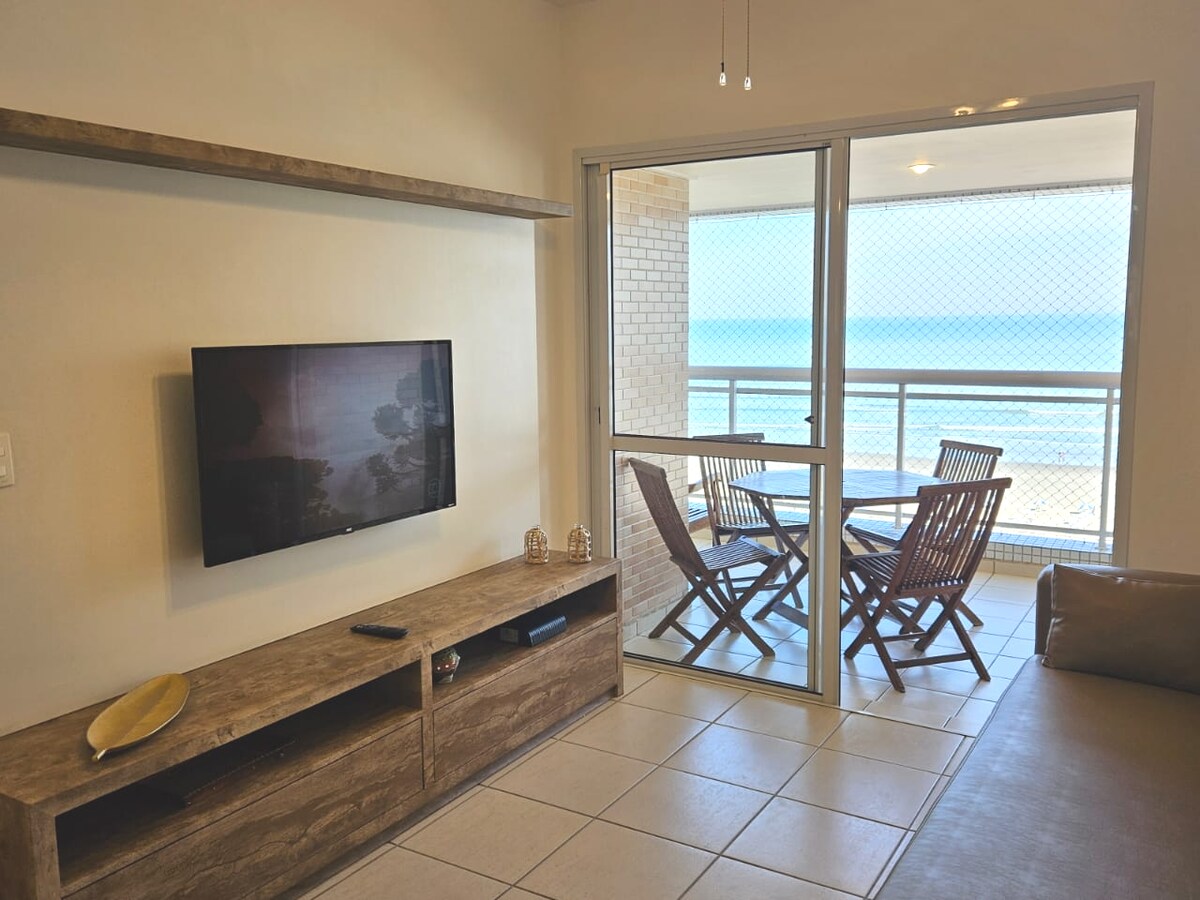 Bem-vindo ao meu apartamento! Ele é de vista e frente para o mar, o que garante uma vista incrível de todos os cômodos.Possui churrasqueira gourmet na varanda. Ar condicionado na suíte e na sala (fotos não atualizada ainda). Além disso, vocês tem direito a área de lazer do prédio. Espaço organizado, decorado e com móveis de alto padrão.Cama queen, smart TV, Wi-fi. Localiza-se na Guilhermina, ao lado da feirinha de doces, a 50m do Carrefour e restaurante.Câmera de segurança no hall de entrada.