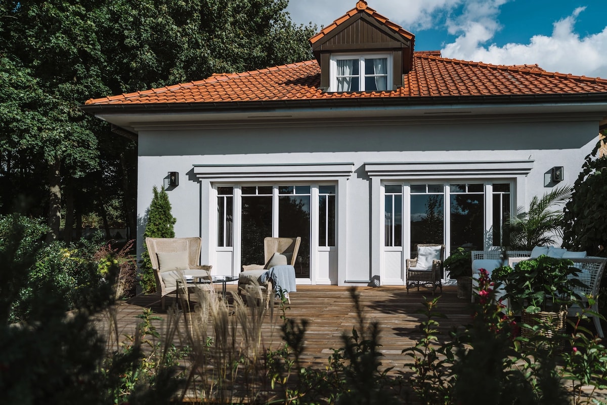 Una villa única de la década de 1970 construida en una escarpa en Kiekrze en la primera línea de edificios del lago Kierski. Interiores únicos con acentos de la República Popular Polaca y Andalucía. Patio increíble, 2 dormitorios (capacidad para 5-6 adultos o siete con niños), comedor con patio, sala de estar con chimenea. También nos gustaría hospedar a tus mascotas. Desde Poznań, también puedes llegar a nosotros en transporte público.