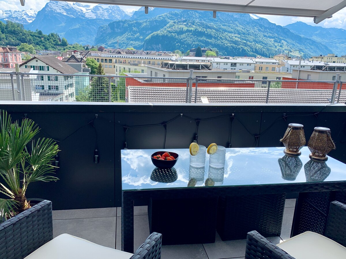 Glarner Spa I Private Sauna & Hot Tub & Alps View