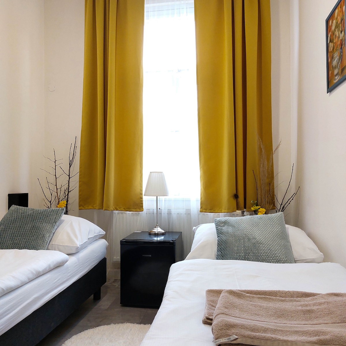 Amplia habitación de hotel en el centro de la ciudad. El centro de Miss Sophie se encuentra junto a la plaza Wenceslao y a un paso de la estación principal de tren. La habitación tiene una cama tamaño king (se puede convertir en 2 camas individuales a petición tuya) y cuenta con wifi gratuito, caja fuerte en la habitación, televisión, mininevera, té y café, estantes y perchas, baño con bañera, artículos de aseo, toallas y secador de pelo.