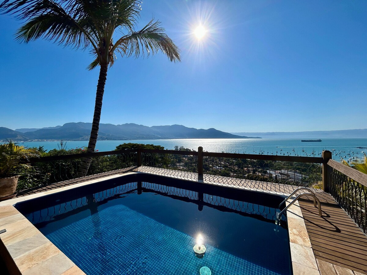 Mirante da Jana Ilhabela Alojamiento único ideal para aquellos que aman la naturaleza, buscan privacidad, tranquilidad y comodidad. Los detalles hacen que el lugar sea extremadamente acogedor y acogedor, proporcionando una estancia muy cómoda. Solo hay 6 unidades, en dos parcelas: Lado mar: DOS CHALETS frente a la piscina, con vista al mar y con jacuzzi. Lado de la montaña: condominio con CUATRO CASAS con hidromasaje (este anuncio) no tienen vista al mar, ¡acceso a la piscina con una vista increíble!
