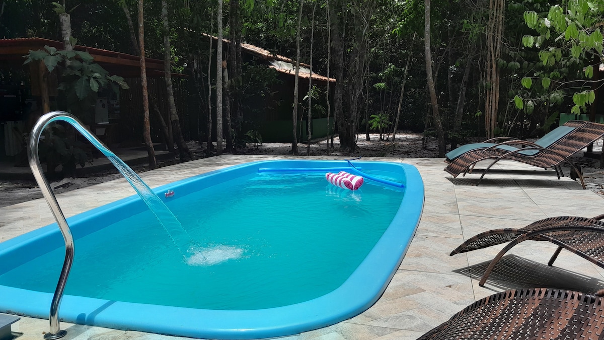 Se você busca sossego e natureza, achou o lugar certo! Nosso chalé é confortável, rodeado por árvores, com redes e jacuzzi ao ar livre. Ideal pra relaxar com aconchego, privacidade e clima baiano. Fica em um bairro tranquilo, perto do mar, a 250m de uma praia deserta por trilha linda, a 500m do centrinho onde ficam o comércio e restaurantes e a 5 km da charmosa Ponta de Corumbau.