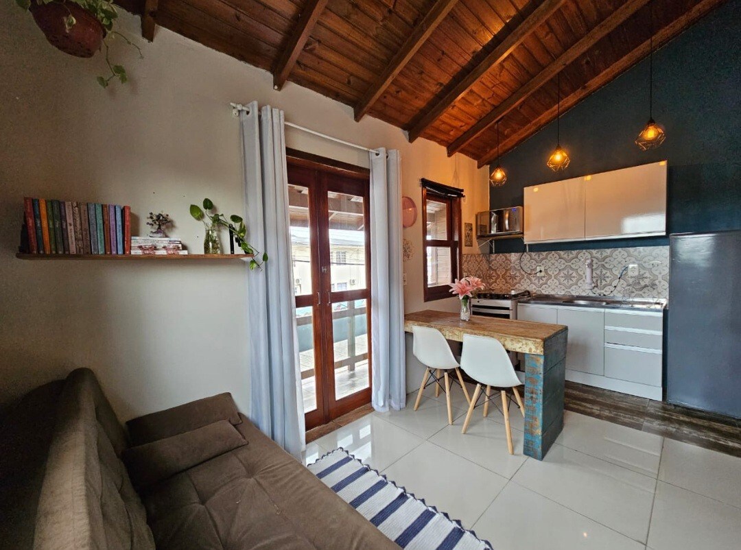 A Casinha é um cantinho especial no paraíso da Guarda do Embaú, com charme, privacidade e conforto! Ela faz parte da @casinhasnaguarda hospedagens :) Está a 420 metros da margem do Rio da Madre e centrinho da Guarda, uma caminhada prazerosa de 4 minutos. Ideal para estacionar o carro e fazer tudo a pé! :) Nossa ideia é propor uma experiência única para nossos hóspedes, por isso investimos em muitos DETALHES especiais! Acomodamos até 4 pessoas! :)