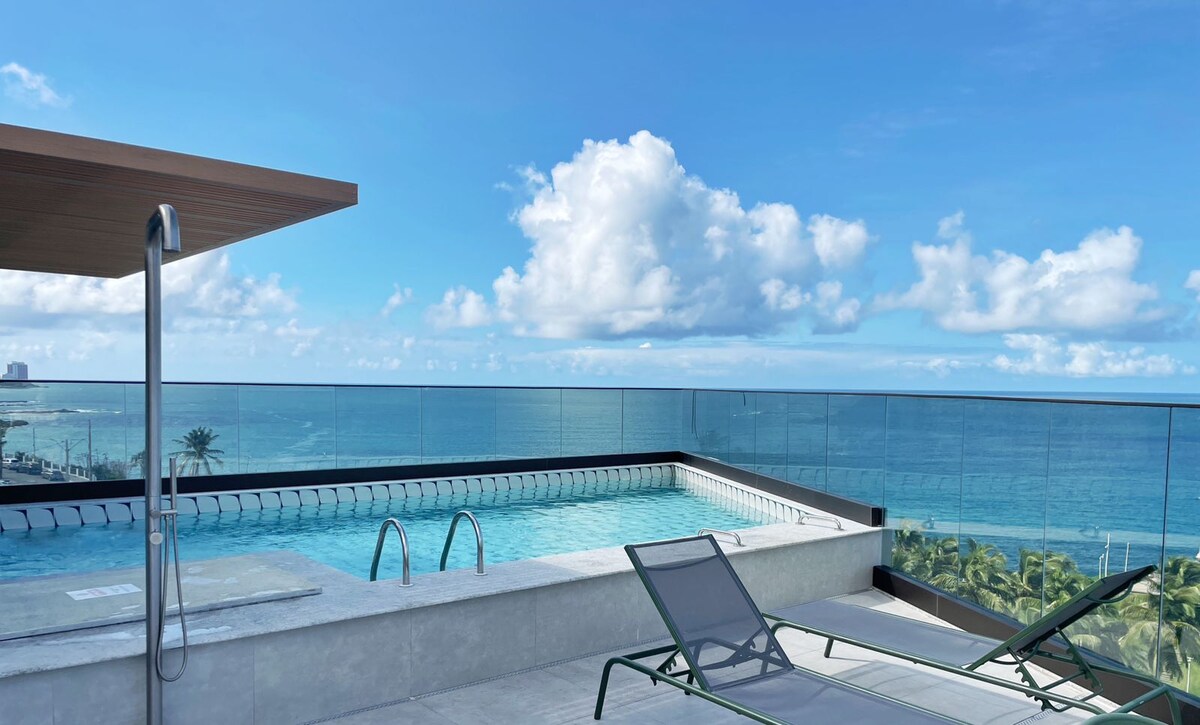 Moderno departamento con dos suites y una impresionante vista al mar desde todos los ambientes, cuidadosamente diseñado para ofrecer comodidad y sofisticación en una ubicación privilegiada en Barra, uno de los vecindarios más codiciados de Salvador. ¡A solo 30 metros de la playa, en el circuito del Carnaval, y a unos 100 metros del faro Farol da Barra! Aquí puedes hacer de todo a pie: playas, cafeterías, restaurantes, mercados, farmacias y tiendas.