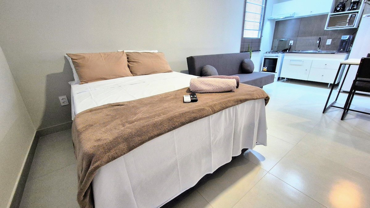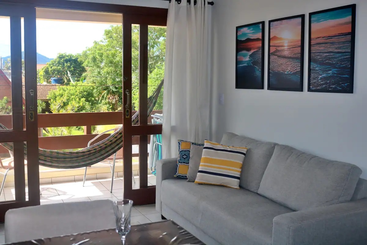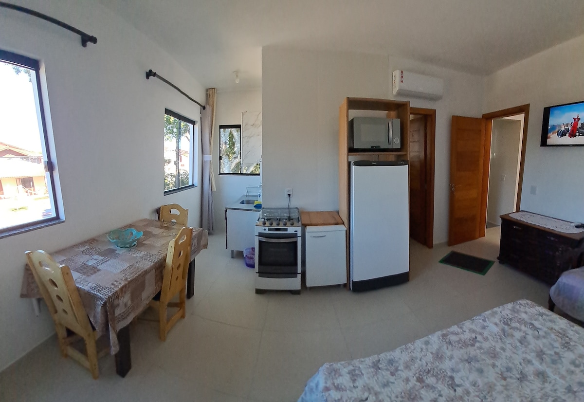 En la playa de Daniela, Estudio/Apartamento independiente de la casa principal, con todas las comodidades, en el norte de la isla de Florianópolis, a 4 kilómetros de Jurerê Internacional y a 200 metros de la playa. Perfecto para parejas, cuenta con cocina integrada completa con vajilla, ollas y cubiertos, horno eléctrico, microondas, nevera, cocina, aire acondicionado, Smart TV e internet WiFi. Cuenta con 1 baño, 1 cama doble, armario ropero, balcón privado. Acceso a ducha exterior. El acceso es independiente.