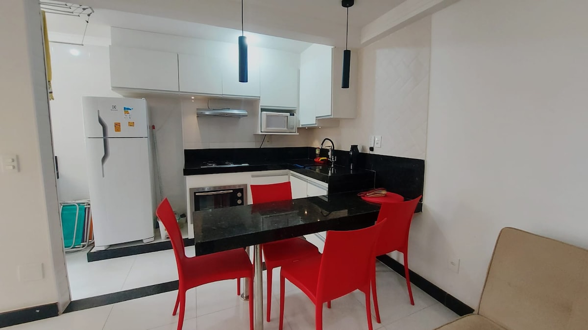 Ubicado en el centro de la ciudad, frente al MAR, cerca de las mejores playas y de las tiendas locales. > Autorregistro de entrada Recepción las 24 horas, los 7 días de > Estacionamiento > Elevadores > Wifi (400 MB) > Cama doble doble tamaño Queen > Cocina completa. > Espacio de oficina en casa - No se admiten mascotas. Acceso a pie a la playa de Areia Preta, la playa de Castanheiras y la playa de Riacho A solo 10 minutos de la playa de Morro y a 10 minutos de la playa de Bacutia Ven y alójate en este increíble lugar, cerca de un supermercado, panadería, farmacia, etc.