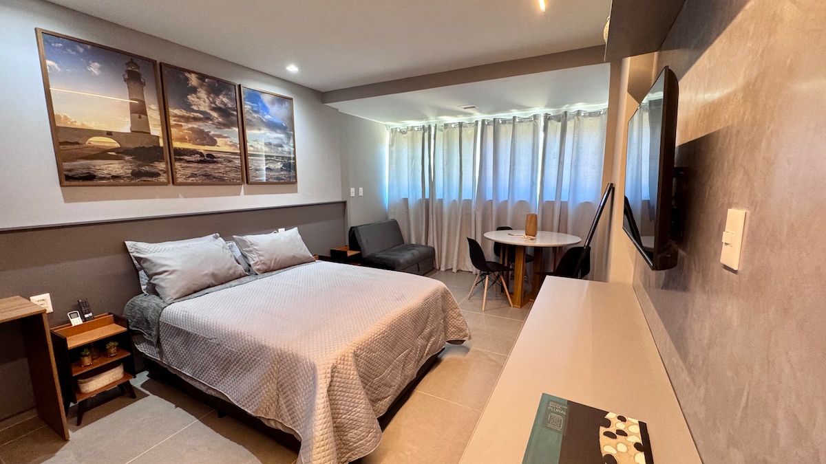 ¡Te damos la bienvenida a tu escapada perfecta en Salvador! Nuestro moderno y acogedor estudio ofrece el equilibrio ideal entre comodidad y sofisticación, frente a la playa de Armação. ¡🏖️ Ubicación privilegiada! Disfruta de lo mejor de Salvador , cerca del centro de convenciones, bares, restaurantes de farmacia e hipermercado... 🏊🏽 La piscina en la azotea,con una espectacular vista al mar, disfruta de momentos inolvidables. 💪🏽 Gimnasio completo moderno y bien equipado ¡🛌🏽 Ambiente funcional para el trabajo y acogedor!