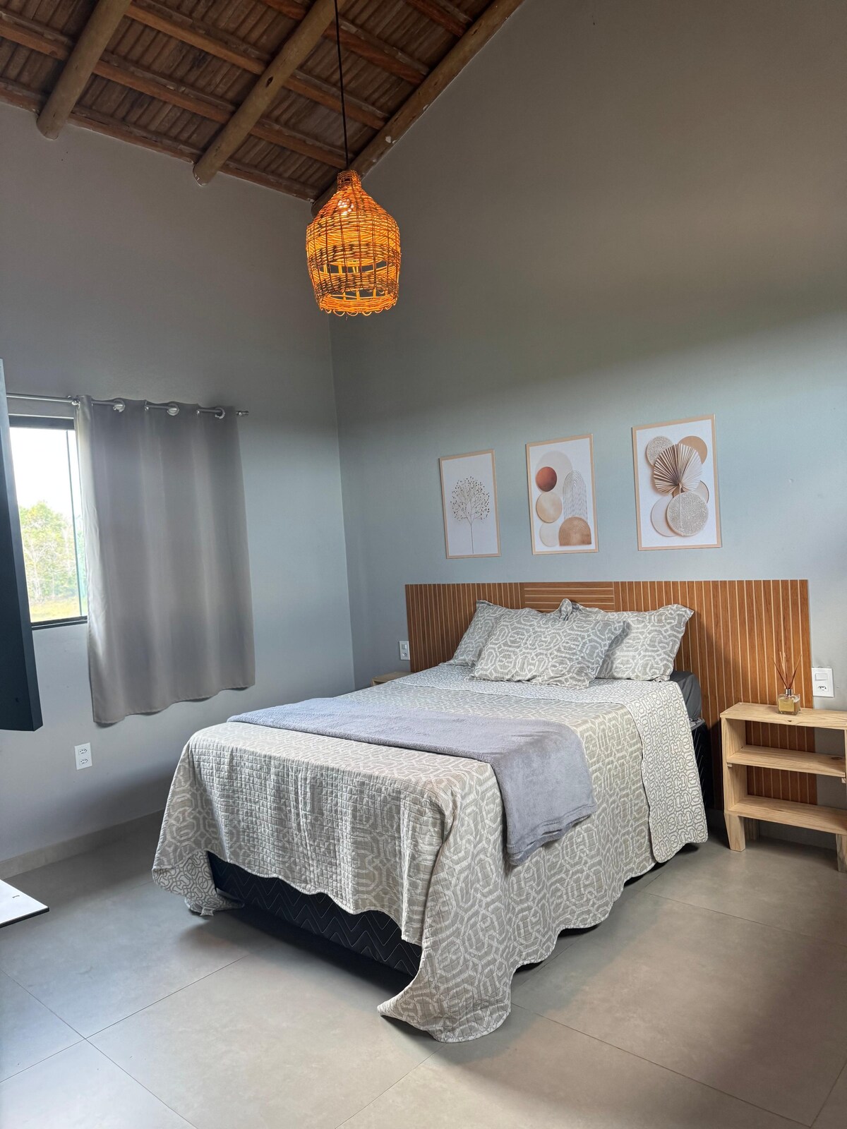 El Flat Lua es un encanto único, casa nueva, camas cómodas y una decoración hecha con mucho amor y cuidado. Cada detalle ha sido pensado para hacer que el ambiente sea acogedor y funcional. Flat Lua es perfecto para parejas solas o parejas con hijos o 2 parejas. Tiene capacidad para 6 personas con comodidad. Dispone de: 1 dormitorio con cama doble queen y litera y aire acondicionado; Baño; Sala de estar con TV por cable que funciona como dormitorio, con dos camas; Zona de barbacoa individual; Piscina;