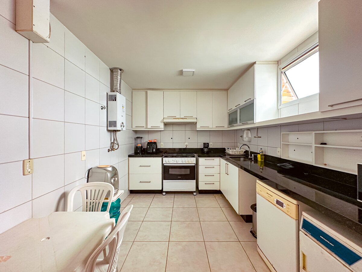 Nuestro apartamento ha sido completamente renovado, con todo el gusto nuevo y de buena calidad, con cama impecable y ropa de baño; cocina completa como todos los accesorios , lavadora, plancha, secadora de nevera y microondas . 01 habitación - suite , cama tamaño king - sofá cama, sala de estar y dos televisores por cable, aire acondicionado ( hasta 4 personas), con acceso a áreas comunes y desayuno opcional ( recogido en el sitio). Seguridad 24/7 y excelente ubicación.