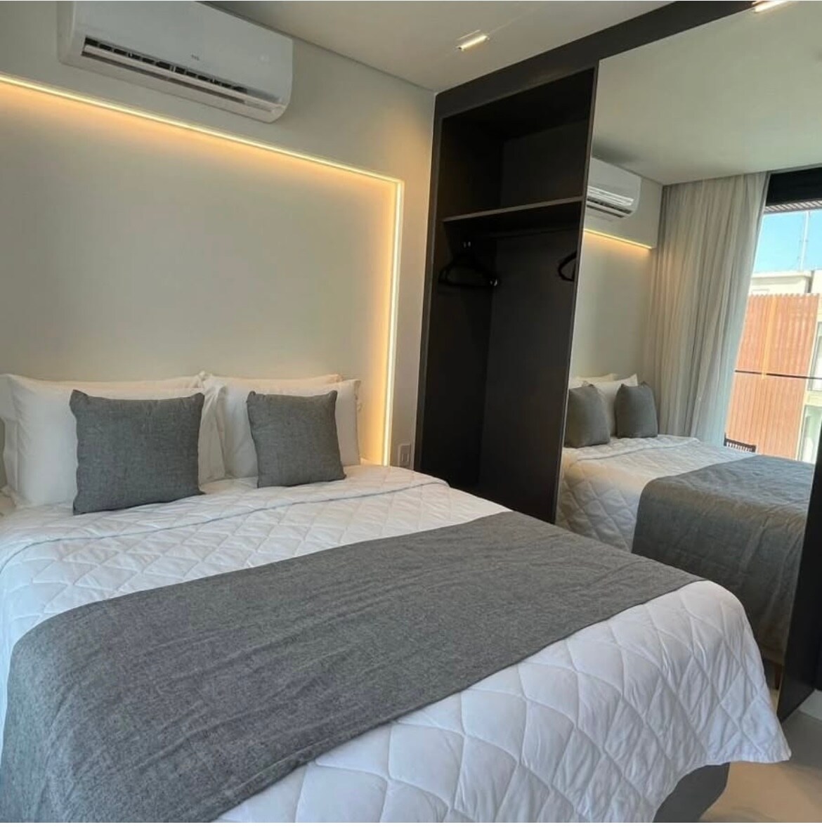 Relájate con estilo mientras te hospedas en este lujoso alojamiento en Porto Alto Resort, situado frente a la playa de Muro Alto. Departamento con dos habitaciones, sala de estar integrada con mini cocina (minibar y microondas) Sofá cama doble grande, TV39", aire acondicionado. Habitación con TV de 39pulgadas, aire, balcón, incluido almacenamiento diario, ropa de cama y de baño. Área de juegos completa con piscinas para adultos y niños, sala de juegos, restaurante con bufé (opcional), gimnasio, salón de belleza, cuidado de perros, spa (opcional).