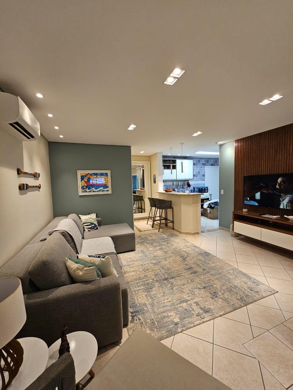 Módulo 6 Recém reformada: - Jacuzzi e Churrasqueira - 5 minutos a pé da praia e 10 do shopping. - Serviço de praia c/ cadeiras e guardas-sol - Ar condicionado split em todos os ambientes - Prédio c/ lazer completo (piscina, quadras, sala de jogos, etc) - Cozinha completa integrada a area de lazer (Lava-Loucas, Microondas, Forno, Geladeira de 3 portas - Wifi e tv a cabo em dois quartos - Completamente livre de cheiro de mofo (comum em imóveis de praia) - 3 vagas de garagem (cobertas)