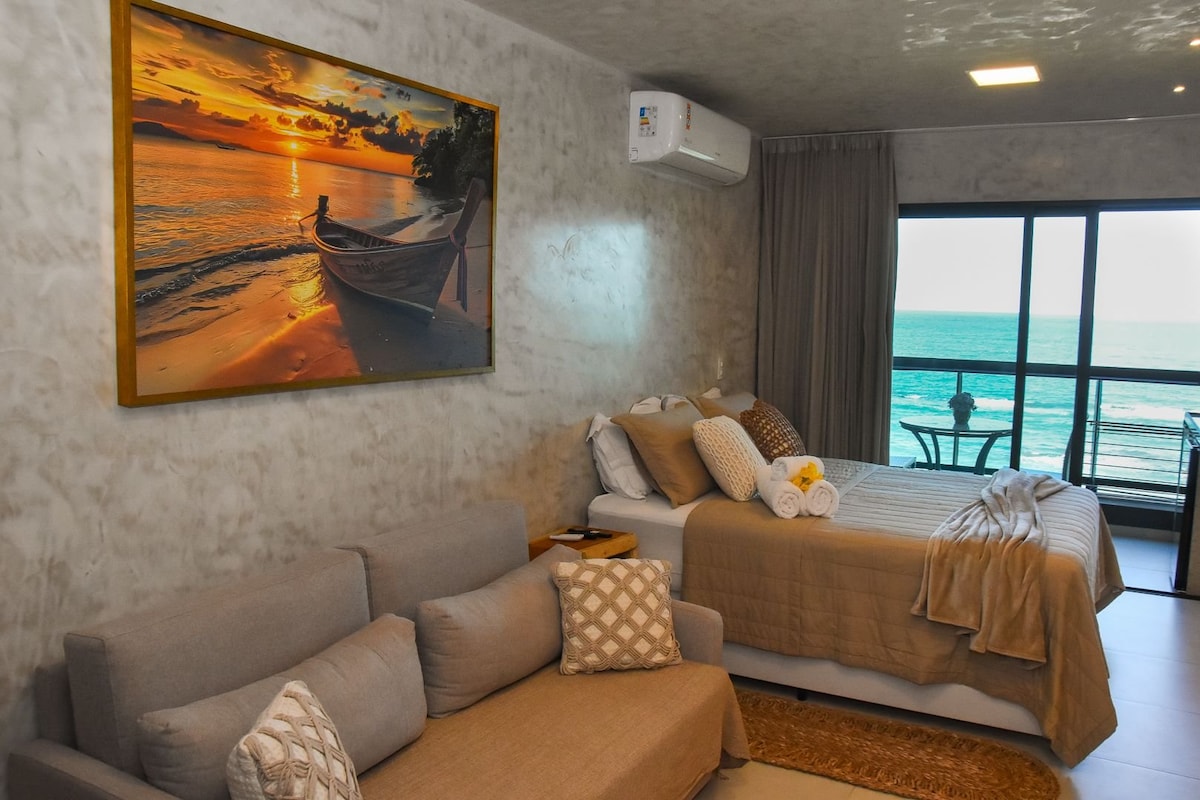 ✔️Apartamento en el tercer piso frente al mar, a 20 pasos de las arenas de la playa y a solo 9 minutos a pie de la famosa Rua das Sombrinhas, que está en el centro (Vilinha) de Porto de Galinhas. ✔️Balcón privado con vistas al mar, aire acondicionado, TV inteligente de 55 pulgadas, piscina, gimnasio, estacionamiento rotativo. ✔️Ideal para un máximo de 3 personas, parejas, se proporcionan sábanas y toallas de baño. ✔️Mira el amanecer sin levantarte de la cama, en días con cielo abierto y según la temporada.
