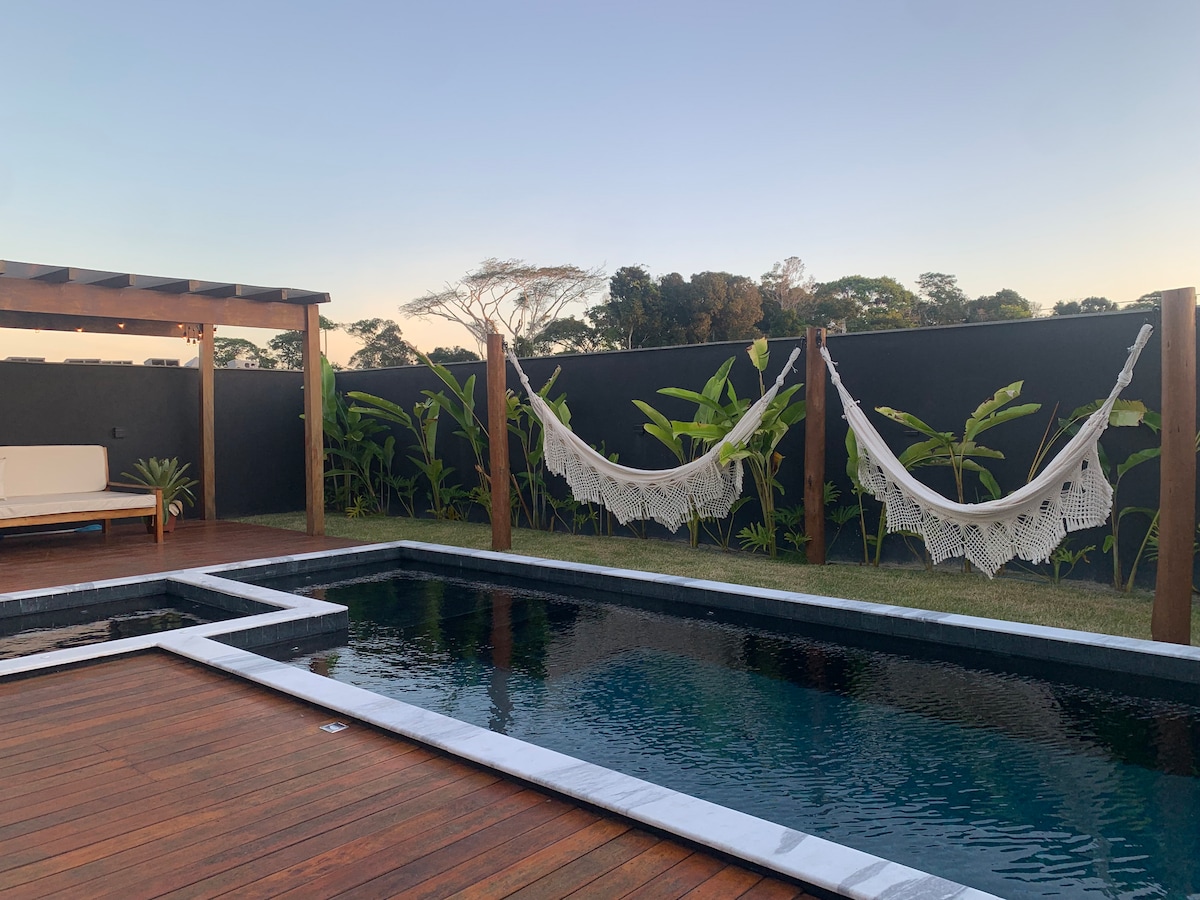 Disfrute de momentos de relajación con toda la familia en este alojamiento tranquilo. Excelente ubicación, fácil acceso y en una zona segura, encontrarás la mayor comodidad para disfrutar al máximo de tu estancia. IMPORTANTE: - Se realizarán limpiezas cada dos días (excepto los domingos) en las áreas internas y externas de la casa, así como el mantenimiento del jardín y la piscina. - El lavado de la ropa de cama se realizará en las máquinas disponibles para ese uso, ubicadas dentro de la casa