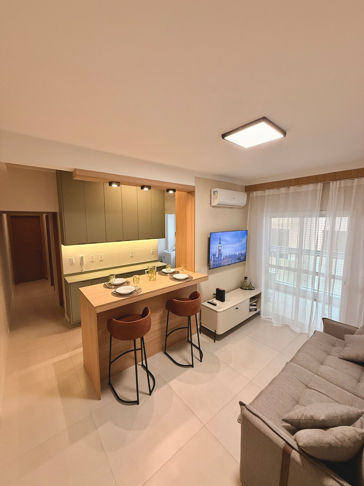 Hermosa vista, a solo 2 minutos a pie de la playa. Departamento nuevo, seguro y muy bien ubicado en una de las mejores zonas de Praia Grande. Departamento totalmente equipado y cómodo, con balcón gourmet, cocina totalmente equipada, wifi y Smart TV, además de sillas de playa y una hielera para disfrutar de la costa. Hay bares, restaurantes, panaderías y mercados a solo unos pasos, todo a poca distancia a pie. Superanfitrión con excelentes evaluaciones. Ideal para parejas, familias o amigos que buscan comodidad, una buena ubicación y vista al mar.