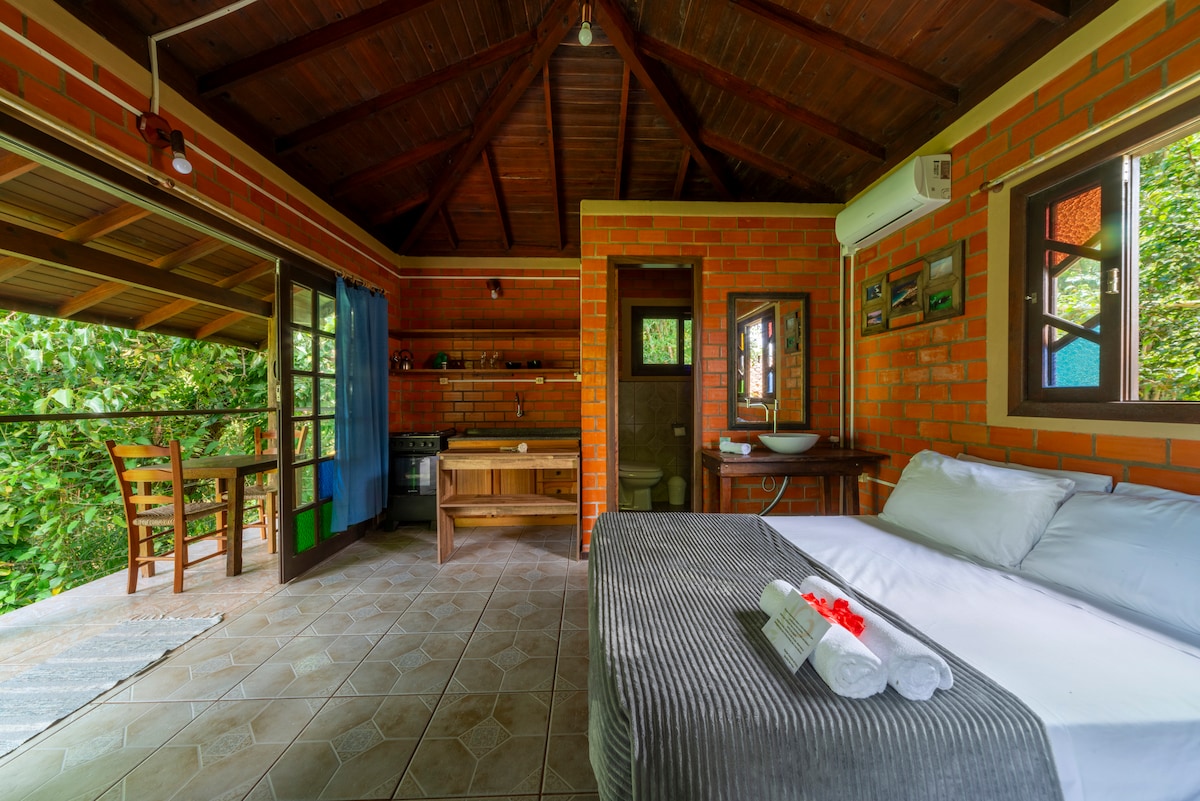 La categoría corresponde a las suites C y D como se muestra en las fotos, sin garantía de una unidad específica. Suites encantadoras con: aire acondicionado dividido, cama tamaño king, jacuzzi, minibar y batas de baño de algodón egipcio. ¡Pequeña cocina, con encimera, cafetera, hervidor eléctrico y sándwichera en los alojamientos! No se permiten ruidos fuertes ni estruendos en nuestro espacio. Sonido dentro de los alojamientos solo a bajo volumen que no moleste a otros huéspedes y silencio después de las 10 p. m.