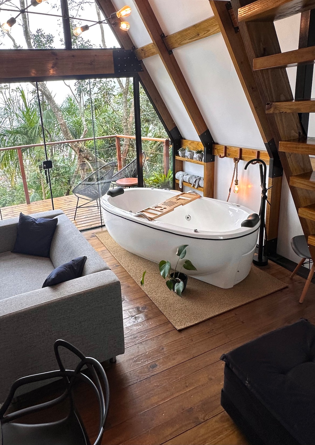 Somos o @greenhouseexperience Um refúgio exclusivo em meio à natureza, a apenas 3 km de Jurerê Internacional. Nosso chalé, perfeito para casais, oferece o conforto essencial para uma experiência inesquecível de conexão com a natureza. Relaxe na varanda cercada por árvores, aproveite a sauna seca, a jacuzzi ao ar livre e aqueça-se à beira da lareira a lenha. A propriedade também conta com uma unidade residencial e outra cabana, onde funciona um espaço terapêutico que atende hóspedes e visitantes.