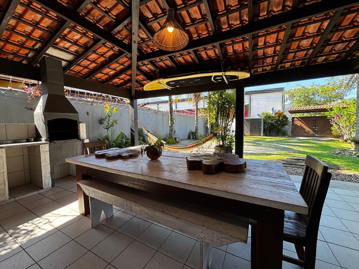 Casa en condominio cerrado, decoración rústica moderna y encantadora, a solo 7 minutos a pie de la playa y a 2 minutos de los principales restaurantes y SM. Rodeada por el verde de la Mata Atlántica, recién reformada, 3 plazas de aparcamiento, 3 suites dobles que pueden alojar cómodamente hasta 6 personas y 3 niños. La cocina es para aquellos que disfrutan de entretenerse con familiares y amigos mientras cocinan, ya que está integrada con la sala de estar muy amplia, barbacoa y piscina privada. Para los días fríos tenemos chimeneas y para los días lluviosos sala de televisión.
