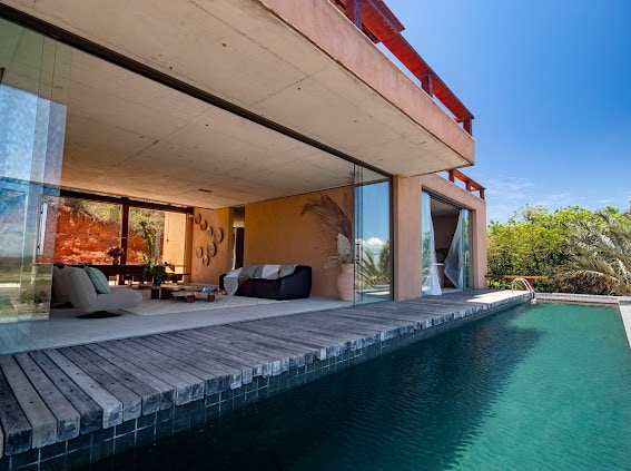 Casa con pantalla gigante en la piscina y deck para lancha / Aretê