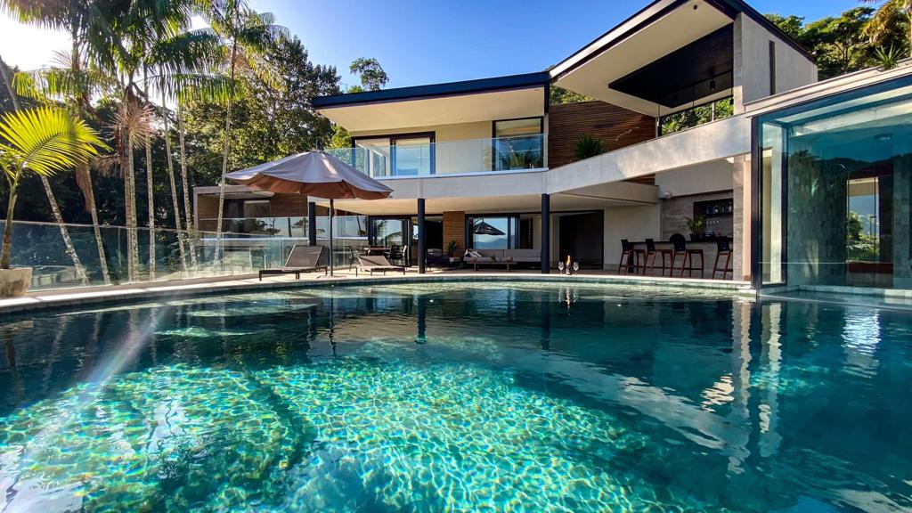 Exclusiva casa de alta gama en el condominio Portogalo en Angra con impresionantes vistas a Ilha Grande, piscina infinita, área gourmet con barbacoa, horno de pizza, cervecería, mesa de billar. Hay 5 suites con aire acondicionado y TV inteligente, una gran sala de estar con TV de 75 pulgadas, Wi-Fi/Starlink y cocina completa. Condominio seguro. También hay disponibles servicios adicionales como mucama, cocinero, barcos y espacio VIP con pantalla grande. ⚠️Importante: Lee la sección de reglas antes de completar la reservación.