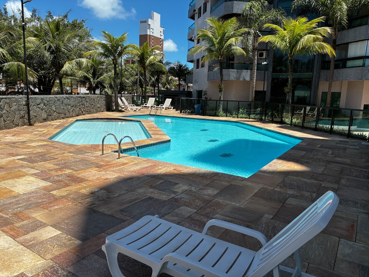 Asóciate con Airbnb, hasta 6 veces de forma gratuita. Opción de llegada anticipada a las 9:00 h o salida después de la hora establecida a las 18:00 h, solo trae una sábana y una toalla de baño. Tenemos almohadas, mantas y fundas de colchón. Se encuentra a 4 minutos a pie de la playa. Hay 2 lugares de estacionamiento, con vistas al mar está completo con (piscina y barbacoa privada) Calle tranquila y boscosa. Excelente ubicación con todo lo que necesitas alrededor. Con tiendas de comestibles a 1 cuadra, farmacia a 4 cuadras, bancos, comida rápida a 6 cuadras, restaurantes a 1 cuadra, gimnasio Smart Fit, cine