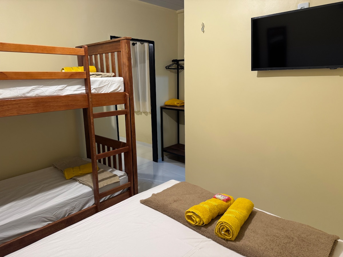 ¡Comodidad y practicidad en un solo lugar! Nuestro alojamiento cuenta con conexión Wi-Fi gratuita, aire acondicionado y una cocina completa equipada con todos los utensilios domésticos para preparar tus comidas con facilidad. La habitación ofrece comodidad para todos, con una cama doble, una cama individual y una hamaca, ideal para parejas, amigos o familias pequeñas. El baño es acogedor y garantiza practicidad y bienestar durante toda la estancia. ¡🏡 Todo diseñado para hacerte sentir en casa!