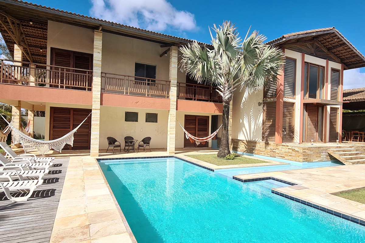 Lua Brisa is our Brazilian dream. A luxurious beach house, directly by the sea, with a private swimming pool, tropical gardens, 2 BBQ decks and lots of verandas. The main house has a beautiful master bedroom with a luxurious bathroom and sea view. Ideal for 2 people. If you are with friends or family, we have an extra guesthouse with 4 bedrooms each with their own bathroom. Cilda cleans and makes you breakfast and lunch (or dinner) and all you have to do is to do some shopping and then enjoy!