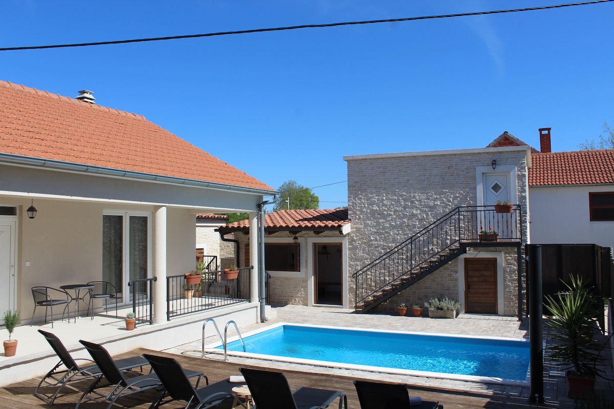 Esta hermosa villa con piscina climatizada, bañera de hidromasaje y sauna se encuentra en un paisaje remoto y aislado con una vista impresionante del valle. Piscina climatizada de abril a noviembre ¡Un lugar ideal para relajarse y un punto de partida para explorar la región y Croacia! Distancia a la ciudad Zadar está a 28 km (aeropuerto a 20 km) de distancia. Šibenik está a 50 km de distancia. Split está a 125 km (aeropuerto a 99 km) de distancia. Distancia a la atracción Lagos de Plitvice a 125 km. Krka a 45 km de distancia Kornati a 30 km de distancia