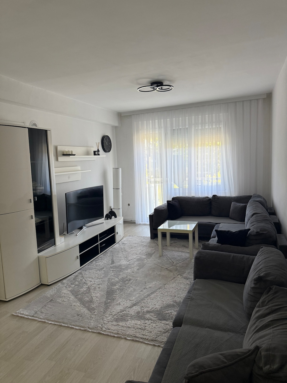 El apartamento privado de 74 m2 es completamente nuevo, espacioso, luminoso y alegre, ubicado en “Rruga B” en medio de un bloque lleno de edificios altos de nueva construcción. Tiene una hermosa vista al paisaje y tiene vistas a una de las calles más famosas de Pristina, que está cubierta de hermosos grafitis de arte. Como ya sabrás, Prishtina es conocida por los mejores macchiatos del mundo y también por su vibrante vida nocturna por eso este barrio es una estancia perfecta para ti, ya que está lleno de bares, cafeterías y restaurantes.