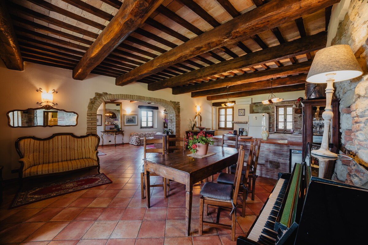 Bienvenido a Poggiodoro Loft, villa de piedras del siglo XVI ubicada en el campo de Anghiari. Impresionantes vistas, interiores encantadores y amueblados que ofrecen todo tipo de comodidades: una hermosa chimenea que mantendrá el ambiente cálido en invierno, la relajante sauna, el jardín privado donde puedes disfrutar del aire libre y el almuerzo bajo la pérgola, barbacoa, fantástica en las estaciones cálidas, salón con brasero, una piscina panorámica para pasar grandes momentos con amigos, para compartir con los huéspedes de la aldea.