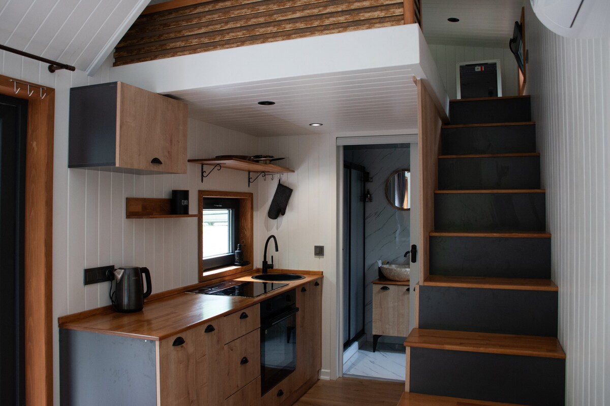 Hemos construido nuestra mini casa Pod Ořechy para mantener el máximo nivel posible de privacidad y tranquilidad. Está justo al lado de un corral con ovejas y ofrece una vista maravillosa de los bosques y prados. La casa es pequeña, pero está pensada hasta el último detalle. Se encuentra en un terreno vallado, para que sus mascotas puedan venir con usted. En la parcela también encontrará una sauna finlandesa privada de leña con vistas románticas, que puede utilizar sin restricciones. En el interior encontrará una cómoda cama, un baño completo y una cocina.