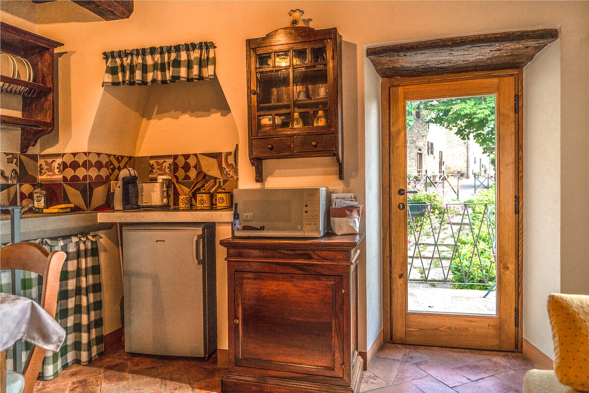 A 12 km da Arezzo, delizioso monolocale arredato con cura al piano terra di un casale in pietra tipico toscano di inizio novecento. Circondato dal bosco e con vista su un borgo, il casale si trova in posizione collinare all'interno di un'ampia proprietà di 5 ettari. Attraverso un sentiero immerso nel bosco con una piacevole passeggiata si può raggiungere il torrente che scorre nella valle. Fino a fine luglio circa (a seconda degli anni) si può fare un bagno in una piccola pozza naturale.