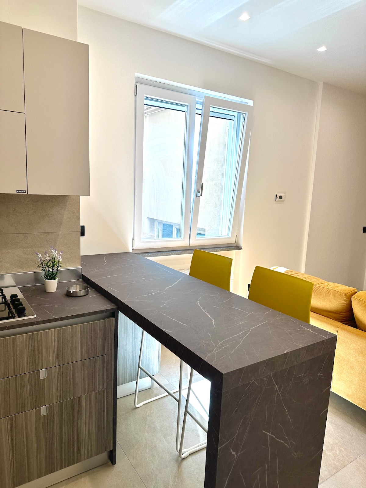 Benvenuti in IRIS, un appartamento open space moderno e luminoso nel cuore di Caserta. Ho progettato gli spazi per farvi sentire liberi e rilassati: cucina elegante, soggiorno arioso e camera confortevole. Godetevi la luce naturale, l’ampio bagno e tutti i comfort pensati per un soggiorno semplice e piacevole.