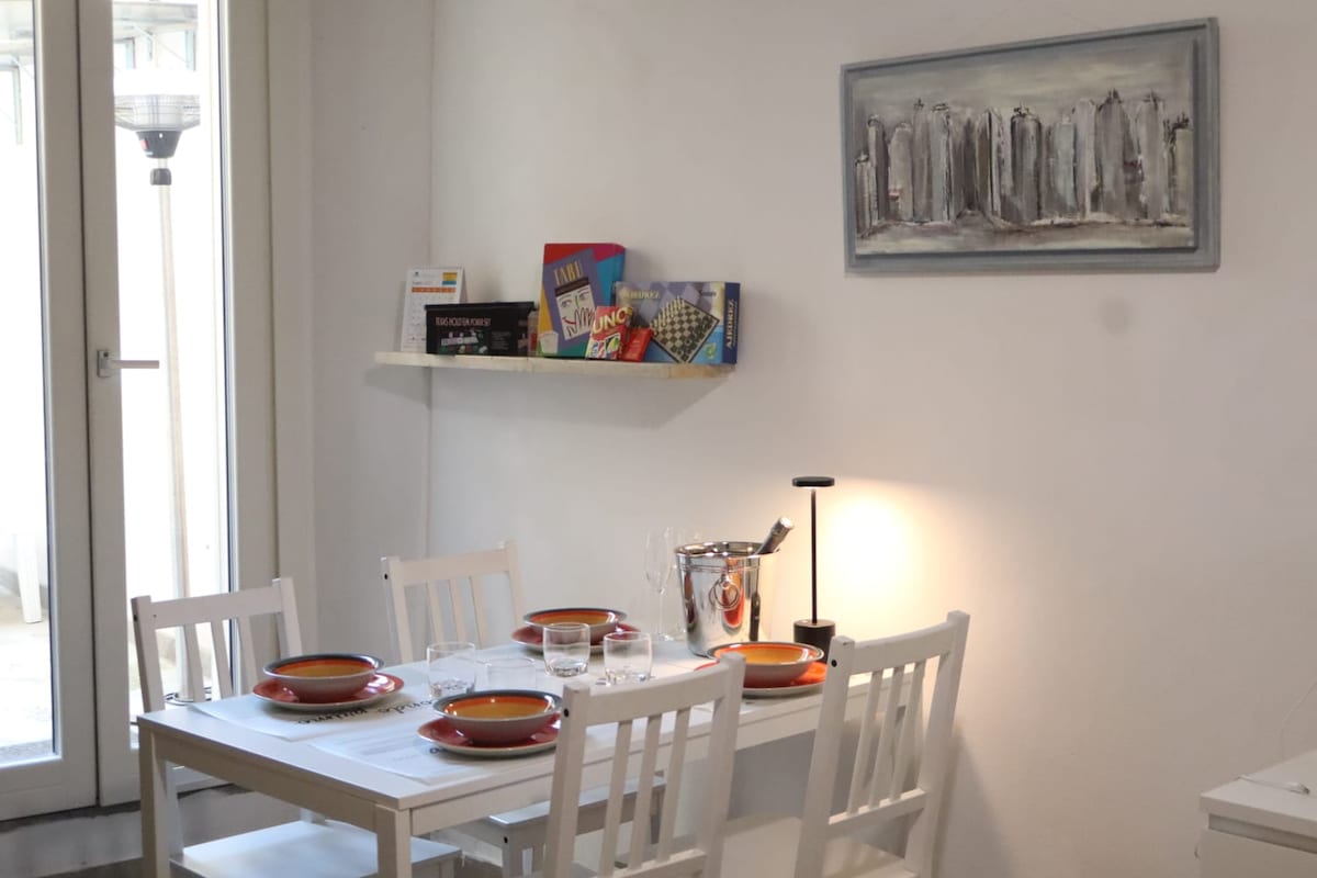 Ca' Ciuchina es un apartamento totalmente ecológico que da la bienvenida a hasta 4 huéspedes en las colinas. Encontrarás una luminosa sala de estar con sofá cama, una cocina con cafetera, hervidor de agua y placa calefactora de inducción, un baño completo con ducha y un dormitorio doble. Si lo solicitas, es posible agregar: Jacuzzi 50 € verano 100 € invierno Sauna 40 € verano 60 € invierno Tabla de cortar con aperitivo (€ 20 por persona) Ofrecemos a todos nuestros huéspedes una experiencia en la naturaleza con nuestros animales.