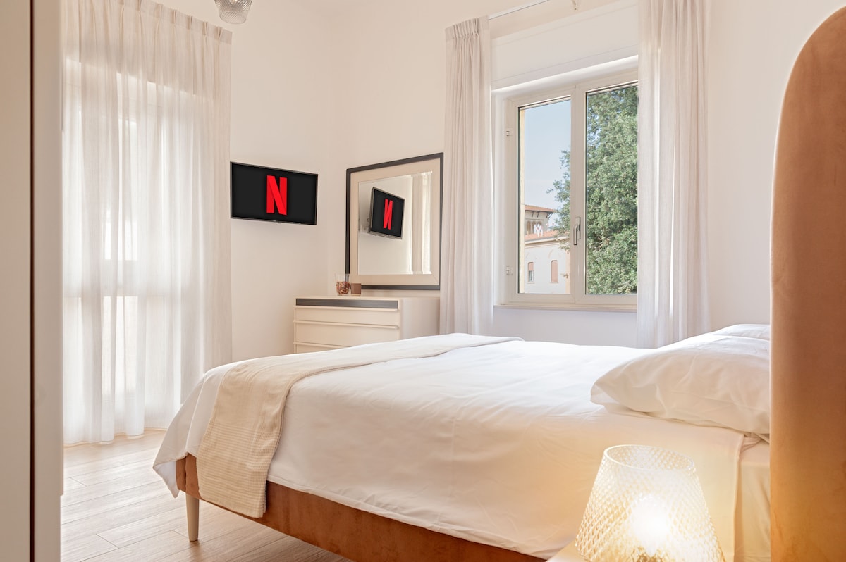 La casa de Elisa es una pequeña joya en el paseo marítimo de Livorno, a un tiro de piedra de Terrazza Mascagni. En un elegante edificio histórico con ascensor, el apartamento tiene vistas al mar con una vista encantadora. Muebles seleccionados entre el diseño y el encanto del pasado, altillo con un lecho con vistas al mar, todas las comodidades y un ambiente que huele al cine y a la libertad. Un retiro perfecto para parejas o viajeros solitarios.