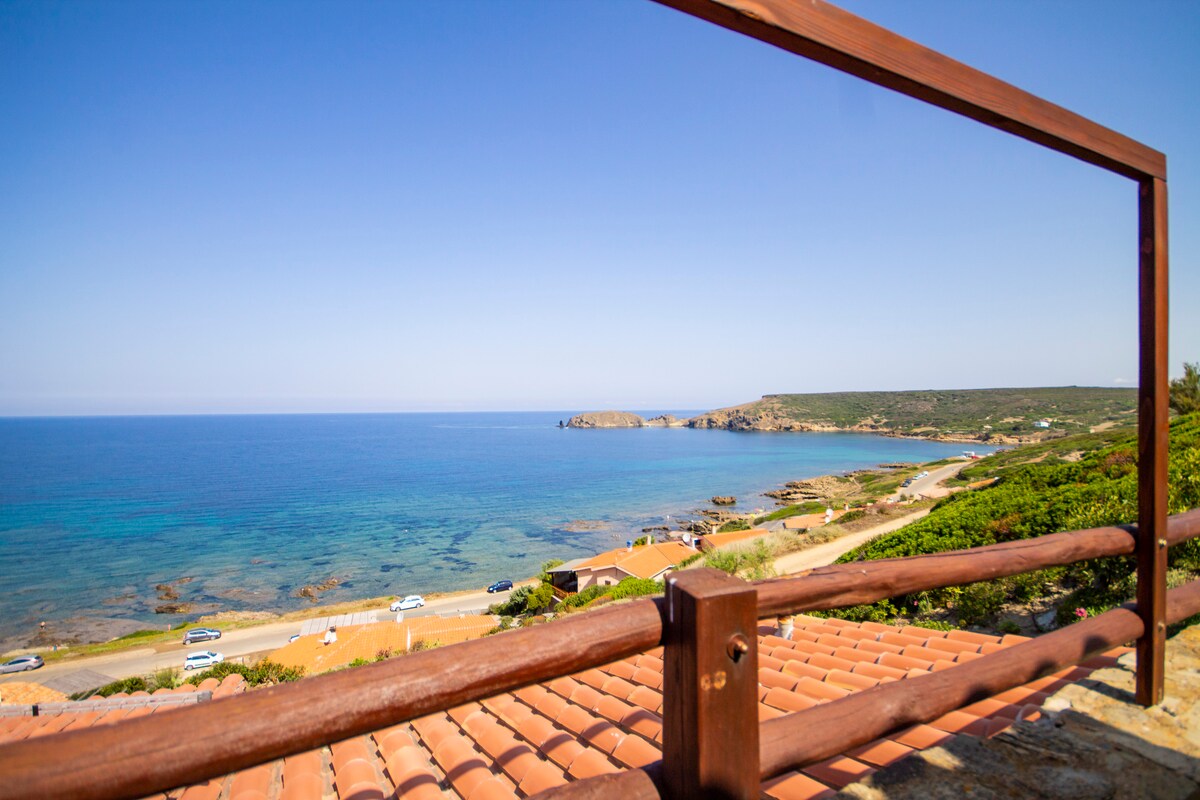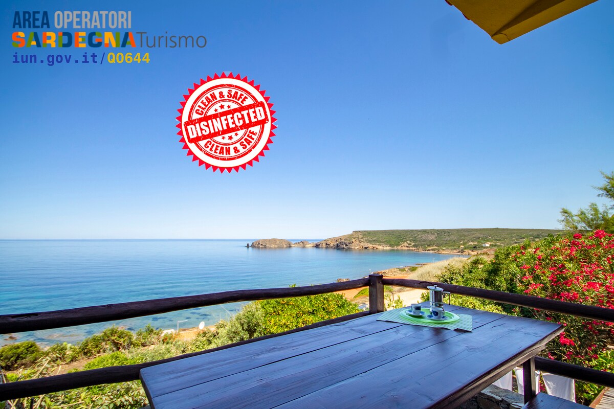 Graziosa villetta indipendente immersa nella Costa Verde, composta da una camera con letto matrimoniale e una con due letti singoli o matrimoniale, bagno, ampio soggiorno, cucina con angolo cottura in granito, zanzariere, due posti auto privati, amaca, doccia esterna,Tv satellitare, arredata con quadri d'artista, ampio giardino e 60 mq di verande con forno a legna per le pizze e barbecue,5 min a piedi dalla caletta e 15 min a piedi a dalla spiaggia con le dune, do pass navetta gratuita IUN P7047