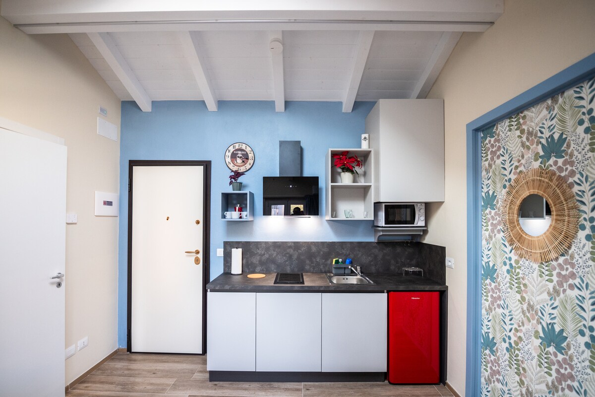 Estudio luminoso y tranquilo en el centro histórico de Parma. Un espacio funcional y acogedor, completamente renovado, donde mis huéspedes pueden alojarse por períodos cortos y disfrutar de una experiencia auténtica, inmersos en el encanto de la historia de «mi» amada Parma. El mobiliario mezcla el gusto moderno con piezas antiguas originales. Para la noche hay una romántica cama doble francesa que mide 195 x 140 cm.