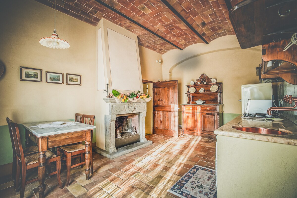 La Misura house is part of Borgo Montecastelli, a beautiful rural complex located right on the border between the provinces of Siena and Florence. Due to its strategic position, straddling two valleys, Borgo Montecastelli enjoys a magnificent panorama from its summit towards the villages that surround it: Panzano, Radda in Chianti, Castellina in Chianti, as well as farmhouses, churches, and towers.