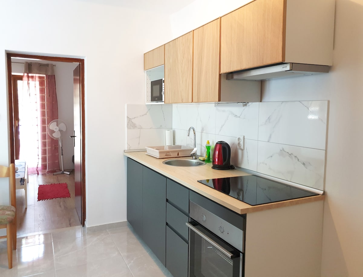 ¡Hermoso apartamento de nueva construcción en Villa Evita! El apartamento tiene un dormitorio y sala de estar con sofá cama, cocina, balcón y baño. El apartamento está totalmente equipado con muebles modernos, TV LCD, TV vía satélite, internet wifi, lavadora compartida y todo lo que necesitas para las vacaciones. El apartamento tiene capacidad para 3 adultos o 2 adultos con 2 niños. Ten en cuenta que no podemos aceptar reservas para 4 adultos.