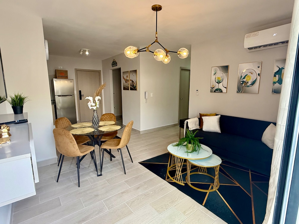 Relájate en este espacio tan tranquilo y elegante.Apto nuevo y moderno,1 dormitorio/ cama queen y sofá cama,1 baño, a 15 min del aeropuerto, 15 min de la playa, a 10 min Downtown Punta Cana y cerca de supermercados, farmacias y restaurantes.Lavadora y secadora, microondas, secadora de cabello, plancha, aire acondicionado, Wi-Fi, TV y Netflix.Disney HBO ,auto check-in, y estacionamiento gratuito.
