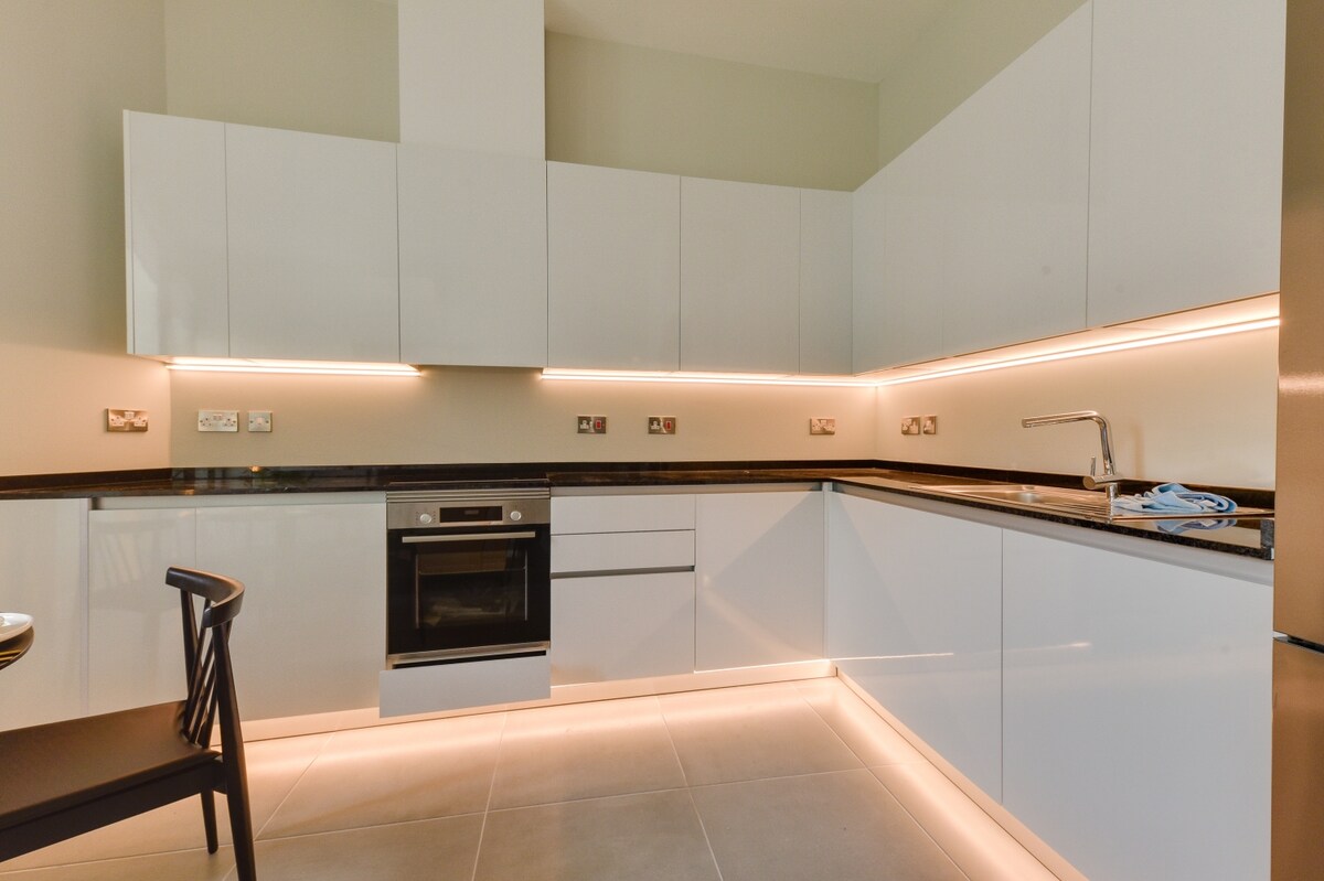 Disfruta de una estancia elegante en esta suite Presidencial en E1 Suites & Spa, a pocos minutos de Eastern Beach. Este apartamento moderno totalmente equipado y de alta especificación cuenta con impresionantes vistas al Mediterráneo y España. Los huéspedes pueden acceder al gimnasio, la piscina y el spa por un costo adicional, que se paga directamente en las instalaciones. El aeropuerto de Gibraltar, el centro de la ciudad y el puerto deportivo se encuentran a 15 minutos a pie. Comienza el día con impresionantes amaneceres desde el amplio balcón.