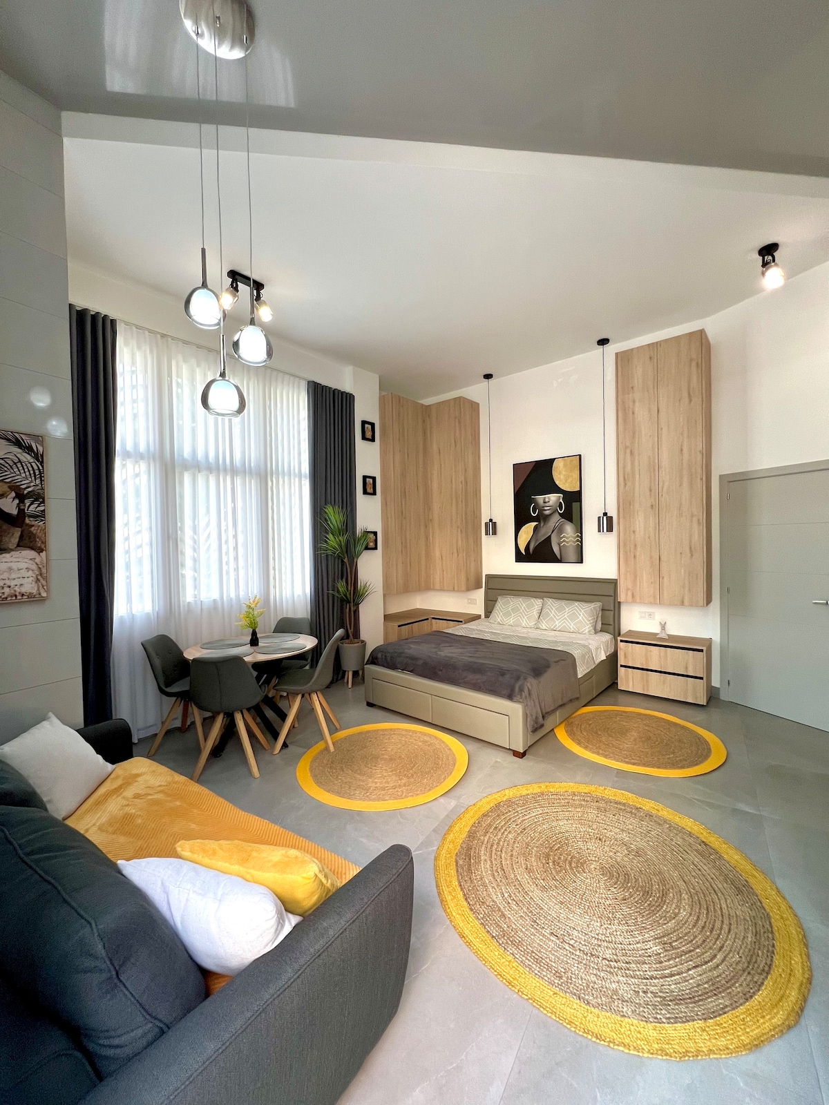 This brand new apartment is meant for design lovers. We took care during the renovation of every detail and created a space where no one will ever want to leave. The apartment is carefully decorated and has light coming from every corner. Open Kitchen fully integrated with the living room and three balconies make up the main space. 2 bedrooms each one his own bathroom the second half of the house. During the night the lights will captivate you. IMPORTANT: No elevator