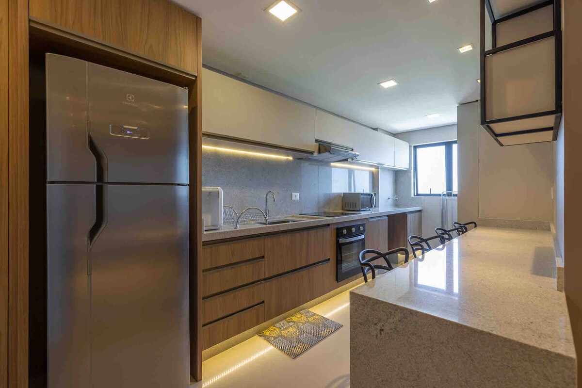 Modernos apartamentos de 120 m² para hasta 10 personas, en el centro de Foz de Iguazú. Comodidad, tecnología y recepción 24 horas. Cocina completa, barbacoa privada, aire acondicionado en todos los ambientes y estacionamiento gratuito para 2 vehículos (con reserva). El condominio ofrece ocio completo: piscina, jacuzzi climatizado, sauna, gimnasio, sala infantil, sala de juegos, espacio de coworking, salón de belleza y mercado 24h.
