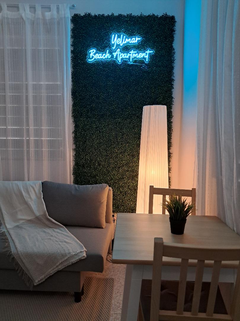 Yelimar is a beautiful and immaculate beach apartment located in Vega Baja, Puerto Rico. Only 2 minutes walking distance to one of the most beautiful beaches in the island ¨Marbella¨. Near by restaurants, supermarket, pharmacy and stores. Recently equipped with all new; furniture and fixtures. Ideal for vacation or business trips. We are characterized by: the quality, comfort, privacy, ventilation of the apartment due to its proximity to the beach, our breezy large balcony and great location.