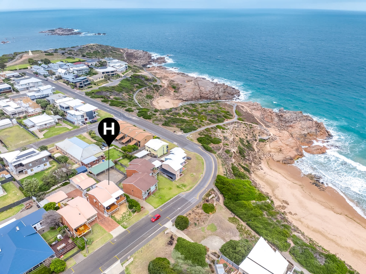 Peaceful and centrally located at The Dolphins on the beachfront, with panoramic views of Horseshoe Bay, this upstairs apartment offers a slice of scenery and position rarely available at Port Elliot's best family beach. Linen provided, fast wifi, free car parking, and only a short walk to the beach, local pubs, cafe's and shops. With a private balcony, you can enjoy uninterrupted views of the historic granite headlands, wake up to beautiful sunrises, and relax to the sound of waves below.